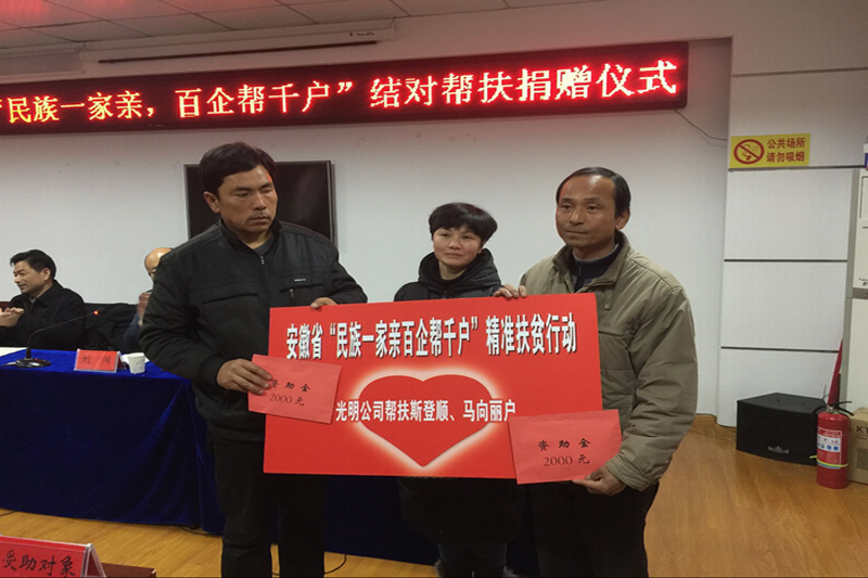 本次捐赠中,光明禽业公司结对帮扶皖河三益回民分场斯登顺、马向丽两户贫困家庭,每户受捐2000元。(何珂)